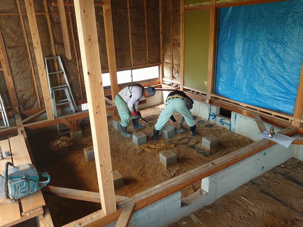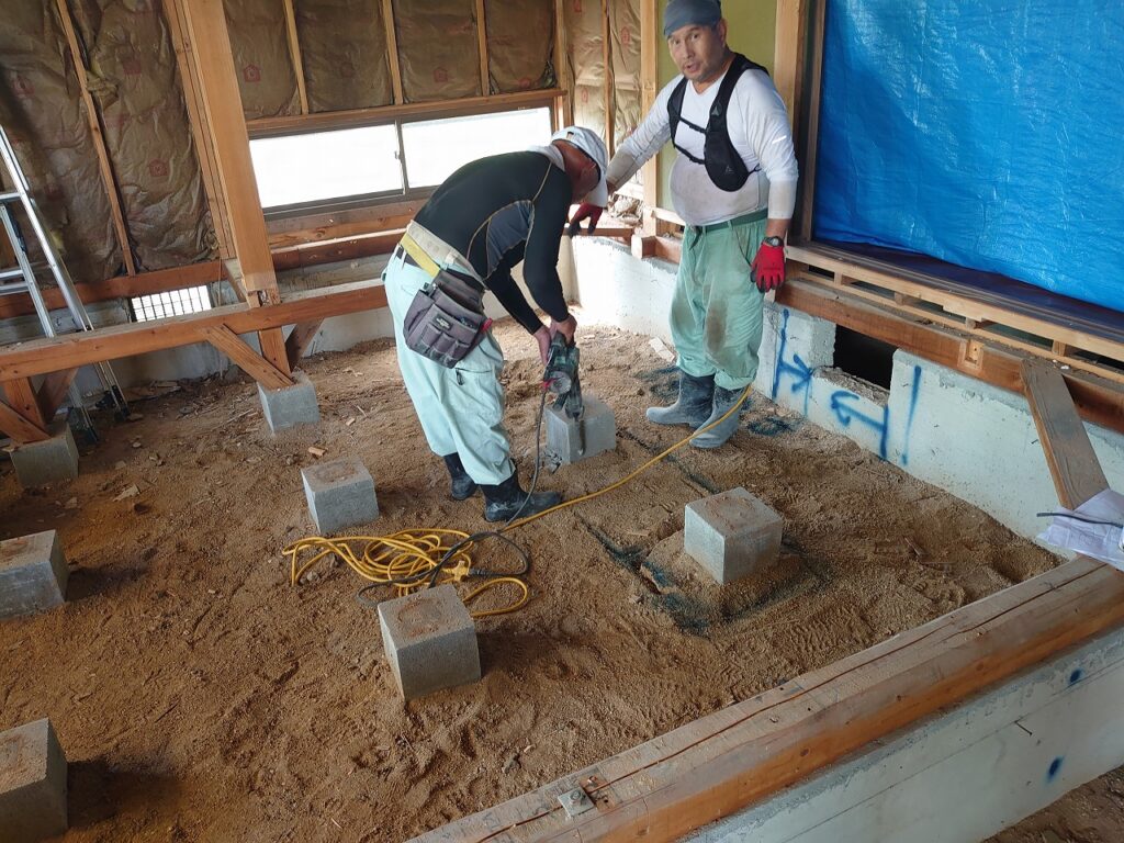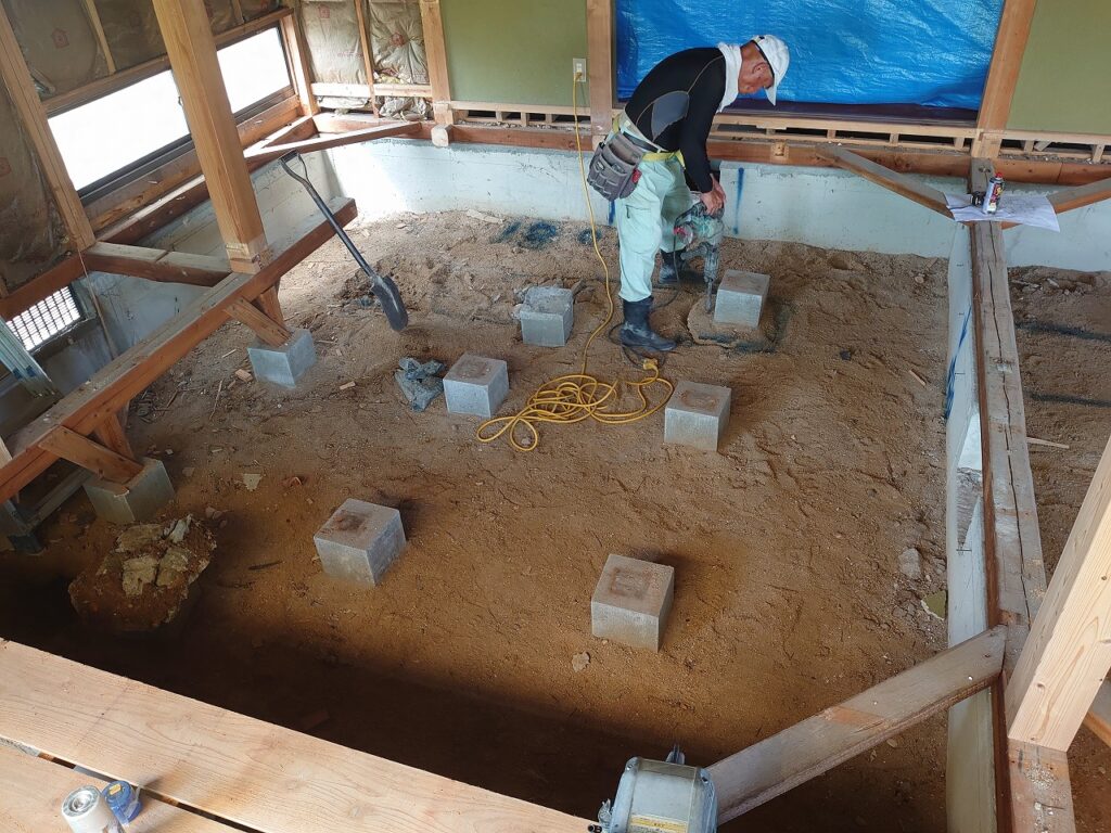 今後は、独立基礎の上に新しい柱を設置し、構造補強を進めていきます。