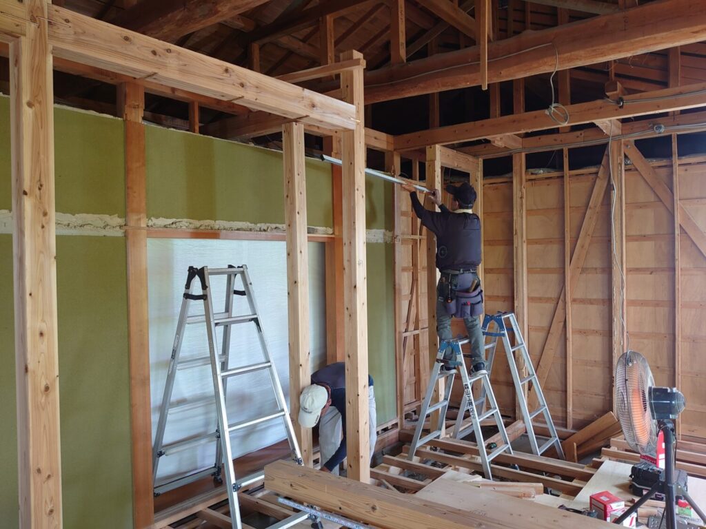 一本一本の柱が建っていくと、空間の輪郭がはっきりと見えてきて、現場の雰囲気も一気に変わります。