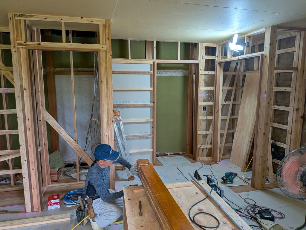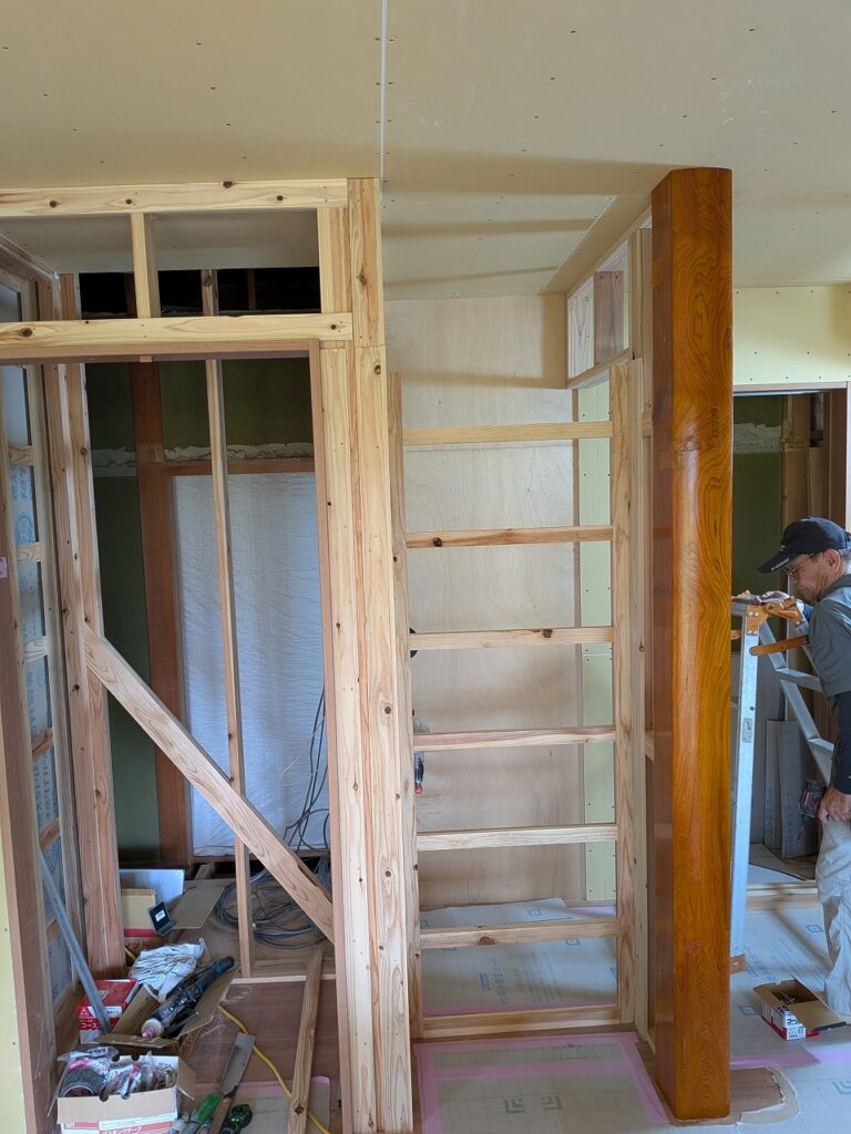 長年この家を支えてきた床柱を、新しい構造の中で再び活かす作業です。