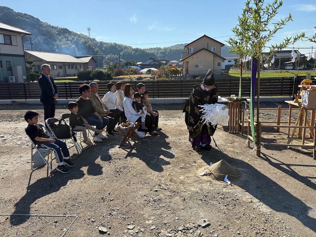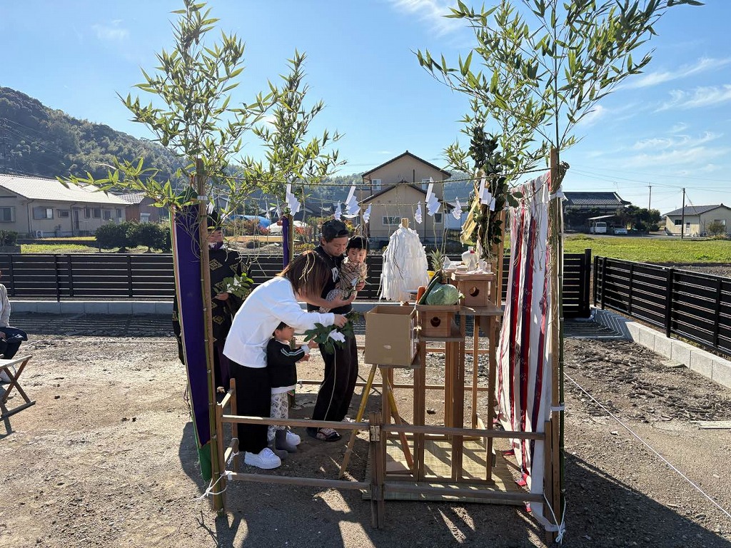 当日は雲ひとつない晴天で、やわらかな日差しが土地全体を包み込み、穏やかで清々しい時間となりました。まるで新たな住まいのスタートを祝福してくれているような、心地よい空気が流れていました。