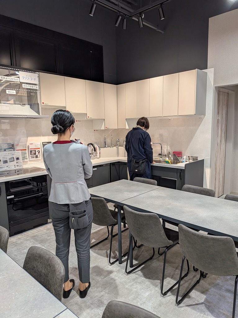 実際のキッチンや収納設備を見ながら、サイズ感や動線、使い勝手などを