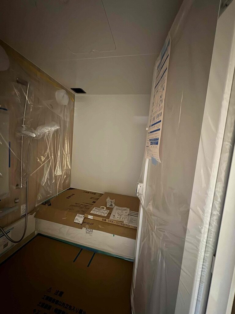 現在進行中の大型リノベーション工事にて、ユニットバスの設置が完了いたしました。