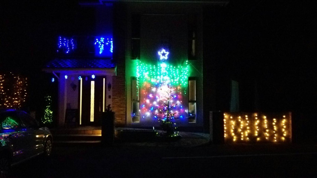 当社の隣にあるモデル展示場でも、クリスマスイルミネーションを