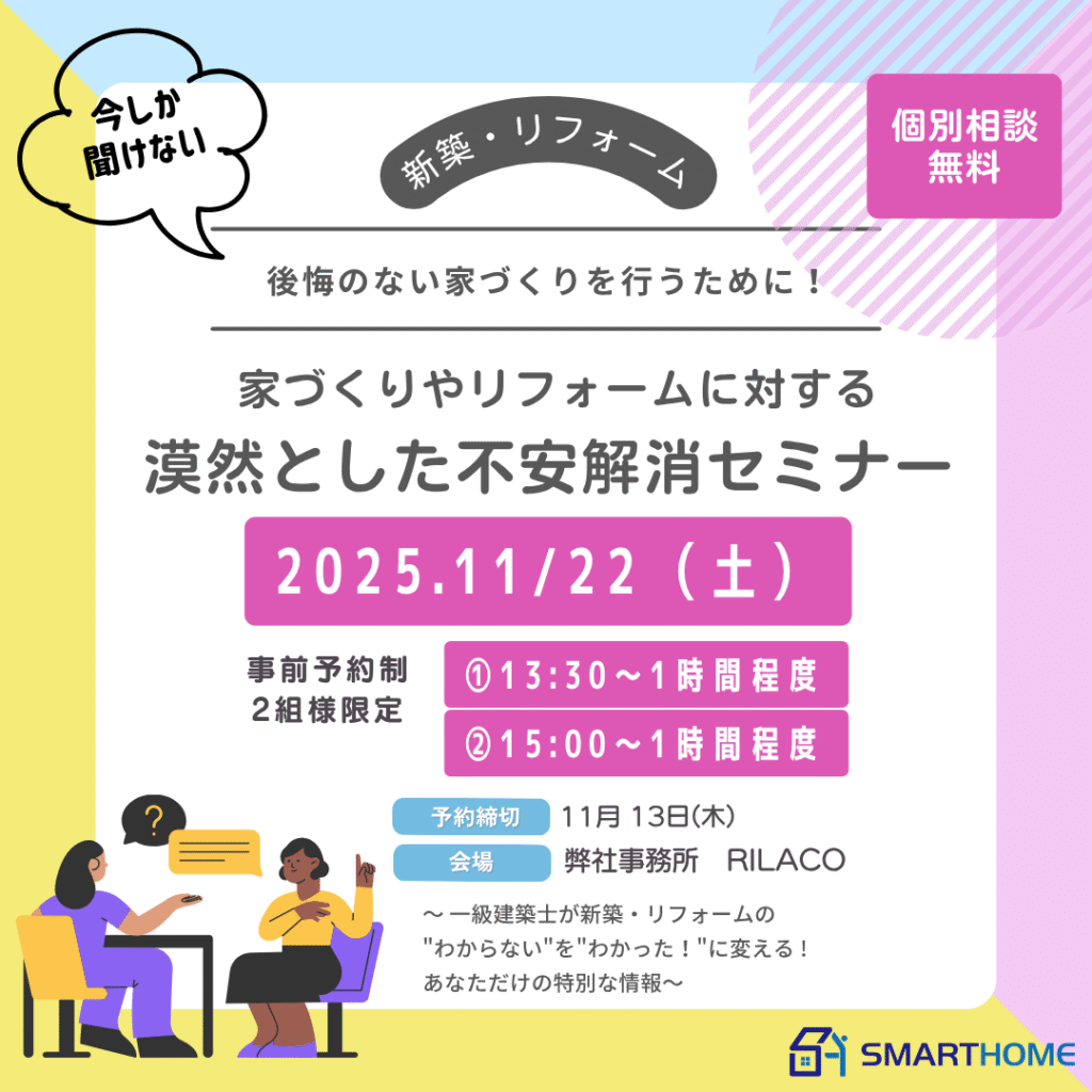 一級建築士が直接お話しする【家づくり不安解消セミナー】を開催します!